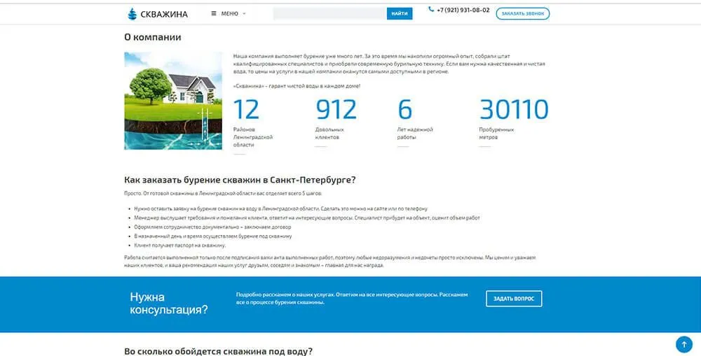 • Проанализирована ниша по услуге "бурение скважин на воду"