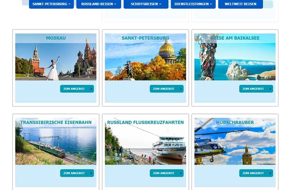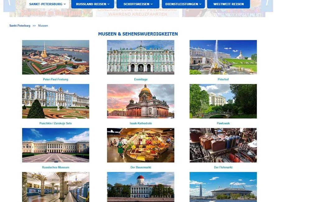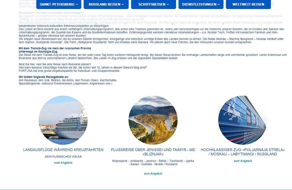 • Разработка индивидуального дизайна: главной страницы, каталога туров, каталога круизов, карточки круиза, информационных страниц